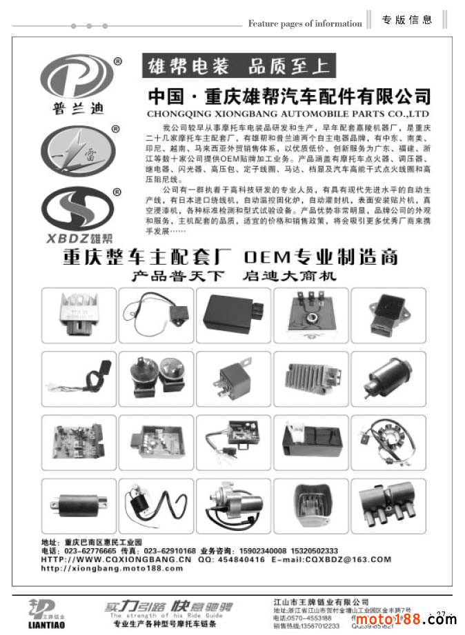 在4月29日全摩會結束之后,也有兩個與行業有關的會議,即5月6日的第23屆中國國際自行車展覽暨2013年中國國際摩托車及零部件交易會在上海新國際展覽中心召開。這次會議是以自行車及配件唱主角,電動車和摩托車作為配角而舉辦的大型會議,這次會議在自行車行業是規模最大的會議。與我們摩托車行業有關的一些從事外貿的整車廠,如建設、錢江等四五家廠家在附展館有一專門展廳。另外,輪胎企業有一個專門的展館,展品是外胎和內胎。其中外胎來的大廠較多,也較全,比如正新、建大、朝陽,國內有影響力的都基本來參會了,是這次會議的亮點。上海會議結束后,我們帶了部分外貿報紙和雜志在上海幾個市場進行了發放,同時走訪了這些市場。自去年上半年,宜川市場拆遷后,在古浪路和滬太路分別形成了兩個市場。我們去了每一家商戶,收集市場客戶資料,為我們今年下半年《華東市場指南》的出版進行準備。這兩個市場都不算大,每一個市場有六七十戶做摩配生意的,有不少商家就是從宜川市場搬來的。還有兩個小市場,科雄和星中路市場,商戶比年初又有減少,市場明顯在萎縮。我們這次的《華東市場指南升級版》原準備將江西不收錄其中,準備和中南地區一起編入,但如果華東市場萎縮輻度較大,江西省還將編入華東地區。