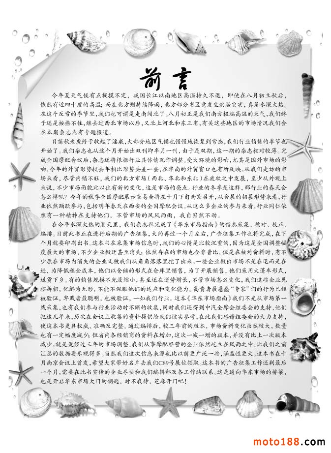 在今年水深火熱的夏天里,我們雜志社完成了《華東市場指南》的信息采集、核對、校正、編排。目前此書正在進(jìn)行后期的廣告征集,大約再過一個(gè)月左右,廣告征集工作也將完成,在下個(gè)月就要印刷出書。這本書在采集市場信息時(shí),我們的心情是比較沉重的,因?yàn)檫@是全國調(diào)整幅度最大的市場,不少企業(yè)搬遷甚至消失;依然存在的市場也今非昔比,但是在核對資料時(shí),有不少原在市場內(nèi)消失的企業(yè)又被我們從角角落落里挖了出來。一些企業(yè)搬出市場不是在退而是在進(jìn),為降低租金成本,他們以倉儲(chǔ)的形式在倉庫里銷售,為了開展銷售,他們采用大蓬車形式,送貨下鄉(xiāng)。有的銷售規(guī)模不光沒縮小,甚至還在逆勢增長,不管市場怎么變化,我們這些企業(yè)見招拆招,化解為無形,不能不佩服他們的適應(yīng)和變化能力。高貴者最愚蠢“專家”們的行為已經(jīng)被驗(yàn)證,卑賤者最聰明,也被驗(yàn)證,一如我們行業(yè)。這本《華東市場指南》我們不光從市場第一線采集,也有我們參與行業(yè)活動(dòng)時(shí)不斷的收集,同時(shí)我們還得到中汽全摩會(huì)組委會(huì)的支持,他們把這幾年來,歷次在會(huì)議上收集的資料提供給我們核實(shí)參考,在此我們感謝組委會(huì)的大力支持,使這本書更具權(quán)威、準(zhǔn)確及完整。通過編排后,較三年前的版本,市場資料變化雖然較大,數(shù)量也有一定幅度減少;但省內(nèi)各經(jīng)銷商的資料在增加,這次一減一增的版本,并沒有比上一次版本減少。就是說經(jīng)過三年的市場調(diào)整,我們從事摩配經(jīng)營的企業(yè)依然屹立在風(fēng)雨之中,比我們之前匯總的數(shù)據(jù)要樂觀得多。當(dāng)然我們這次信息來源也比以前更廣泛一些,涵蓋性更大。這本書在十月南京會(huì)議上首發(fā),希望大家?guī)Ш妹ノ覀僀89號展位領(lǐng)取。這本書的廣告征集工作還剩最后一個(gè)月,需要在此書宣傳的企業(yè)盡快和我們編輯部及各工作站聯(lián)系。這是通向華東市場的橋梁,也是開啟華東市場大門的鑰匙,時(shí)不我待,芝麻開門吧!