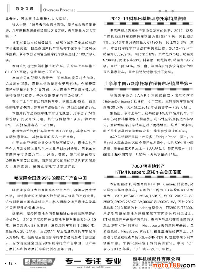 目前秋老虎終于收起了淫威,大部分地區氣候也慢慢地恢復到常態,我們行業銷售的季節也開始了。我們雜志也從這個月開始出雙刊即半月一刊,由于是雙期,這一期的雜志相對較薄。完成全國摩配會議后,雜志還將根據行業具體情況作調整。受大環境的影響,尤其是國外市場的影響,今年的外貿形勢較去年相比形勢要差一些,在華南的外貿窗口也有所反映。從我們走訪的市場來看,盡管內銷不旺,我們的北方市場(西北、華北和東北)在疲軟之中發展,至少從外觀上來說,不少市場面貌比以往有新的變化,這是市場的亮點。行業的冬季是這樣,那行業的春天會怎么樣呢?今年的秋季全國摩配展示交易會將在十月下旬南京召開,從會展的招展形勢來看,行業依然踴躍參與,包括明年春天在西安的全國摩配會議。從這么多企業的參與來看,行業同仁依然有一種精神在支持他們,不管市場的風風雨雨,我自巋然不動。