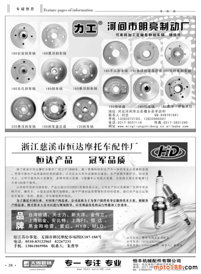 26 河間市明亮制動廠/浙江慈溪市恒達摩托車配件廠