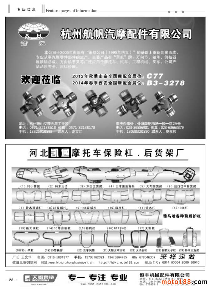 28 杭州航帆汽摩配件有限公司/河北凱通摩托車保險杠 . 后貨架廠