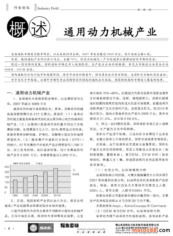 本期《摩托車與配件》雜志為小型汽油機專輯,這似乎與摩托車配件不太相關,但我們還是用心地去組織了與通機行業有關的技術、標準及資訊類的文章。我們編纂這個專輯也是有以下各方面的原因: