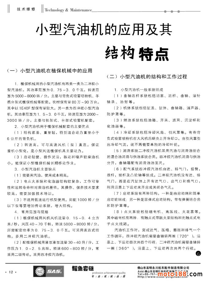 本期《摩托車與配件》雜志為小型汽油機(jī)專輯,這似乎與摩托車配件不太相關(guān),但我們還是用心地去組織了與通機(jī)行業(yè)有關(guān)的技術(shù)、標(biāo)準(zhǔn)及資訊類的文章。我們編纂這個(gè)專輯也是有以下各方面的原因: