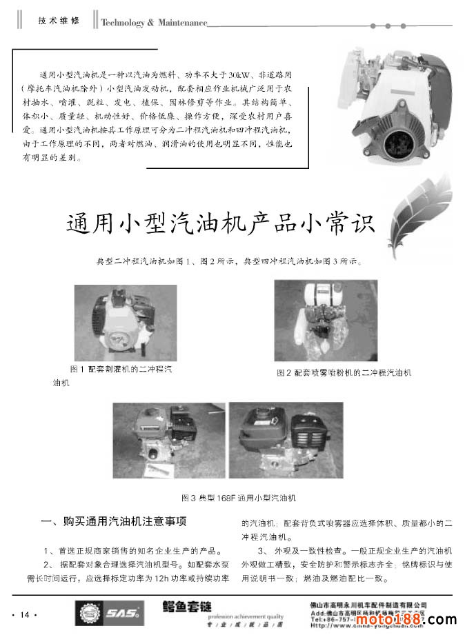 本期《摩托車與配件》雜志為小型汽油機專輯,這似乎與摩托車配件不太相關,但我們還是用心地去組織了與通機行業有關的技術、標準及資訊類的文章。我們編纂這個專輯也是有以下各方面的原因: