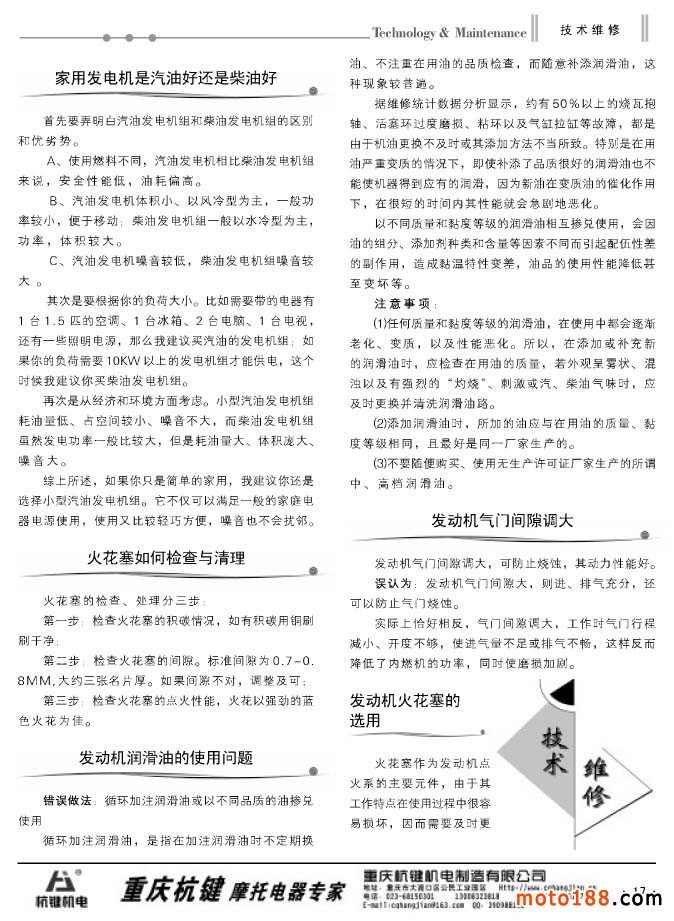 摩托車與配件》雜志為小型汽油機(jī)專輯,這似乎與摩托車配件不太相關(guān),但我們還是用心地去組織了與通機(jī)行業(yè)有關(guān)的技術(shù)、標(biāo)準(zhǔn)及資訊類的文章。我們編纂這個(gè)專輯也是有以下各方面的原因: