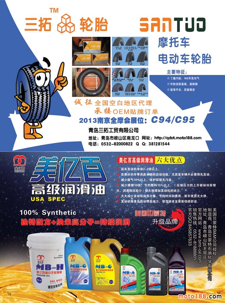 第三十三屆秋季全摩配也將于本月24-26日在南京國際會展中心召開,這是行業秋季大點兵。按照組委會的要求,大會的會刊將在本月15日抵達展館,所以也必須在國慶過后就得送去印刷。在今年秋季南京全摩會,我們還將為參會企業和觀展的經銷商,贈送新版《華東市場指南》,由廣州工作站承制的《廣州市場導購指南》,今年第三期《摩托車與配件外貿報》,今年十月上、下期《摩托車與配件》雜志,以及部分庫存書——《中國摩托車配件生產企業大全》。《配件生產企業大全》上半年在濟南首發,目前除湖南、湖北及山西、廣西、河北部分市場沒有發放外,其余市場基本都是送書上門;還有部分省級市場由雜志發行點代理發送;沒有收到這本書的以及不在摩配市場的企業請到我們南京展位C89領取;還有《華南、三北、西南》三個市場的指南,也在會上發送。因為庫存的書不多,需要這些書的企業請盡量早去我們展位領取,送完即止。
