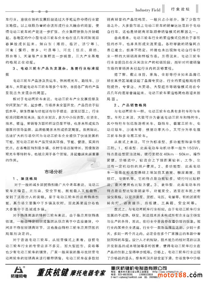繼上期雜志我們做了小型通機(jī)的專題資訊報(bào)道之后,市場(chǎng)反映很好,這一期我們做了三輪摩托車的專題。三輪摩托車是今年摩托車市場(chǎng)的亮點(diǎn),在二輪車市場(chǎng)整體下滑的狀況下,今年三輪摩托車依然逆勢(shì)增長(zhǎng)。從現(xiàn)有統(tǒng)計(jì)數(shù)據(jù)看,今年增長(zhǎng)幅度大約在13%左右,總產(chǎn)量將超過500萬輛。目前已經(jīng)形成以河南、重慶、廣東、山東等主要產(chǎn)區(qū),江蘇的淮海宗申是全行業(yè)最大的三輪車制造企業(yè),今年產(chǎn)銷量竟達(dá)到70多萬輛。目前三輪車市場(chǎng)正是黃金年代,我們的配件制造企業(yè)有許多配件和三輪摩托車是相同的,大家不妨關(guān)注這個(gè)新興的面向廣闊農(nóng)村的市場(chǎng)。這些新的產(chǎn)業(yè)帶需要新的配套鏈,愿你們也成為這個(gè)產(chǎn)業(yè)鏈上的鏈節(jié),對(duì)從事摩托車配件產(chǎn)業(yè)的企業(yè)來說,這也是一個(gè)新的商機(jī)。今年我們?nèi)チ嗽S多市場(chǎng),有些地方已經(jīng)形成了單獨(dú)的三輪車市場(chǎng),一般摩配市場(chǎng)也增加了三輪車配件經(jīng)營(yíng)的門市,摩托車業(yè)不僅要向深度進(jìn)軍,也要橫向地向?qū)挾劝l(fā)展。作為輿論導(dǎo)向的媒體,我們也要向行業(yè)輸送正能量,為企業(yè)生產(chǎn)和經(jīng)營(yíng)出謀劃策。我們通過組織系列的資訊,讓企業(yè)能對(duì)新興的產(chǎn)業(yè)有個(gè)大致地了解,為企業(yè)的決策起到參謀作用。我們真誠(chéng)地希望,摩托車業(yè)的所有企業(yè)都能在這個(gè)行業(yè)健康有序地發(fā)展成長(zhǎng),共同壯大。