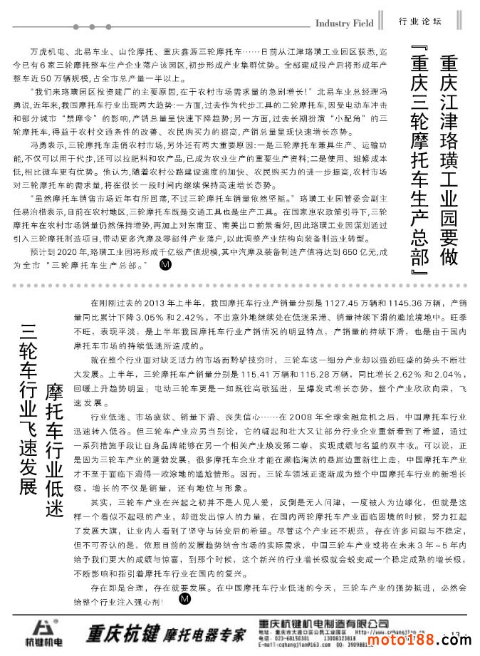 13 重慶江津珞璜工業(yè)園要做“重慶三輪摩托車生產(chǎn)總部”+摩托車行業(yè)低迷 三輪車行業(yè)飛速發(fā)展