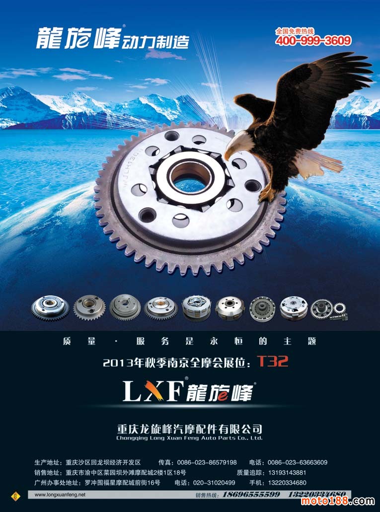 本次雜志因為要參加10月17-20日在重慶國際博覽中心舉辦的第十二屆中國國際摩托車博覽會,在這個展會上我們還將《中國摩托車配件華東市場指南》帶到會上發行,因而我們在過完中秋節后,工作就十分繁忙。為了能保證及時參展,我們都在趕點,這之中還包括國慶假日,印刷廠還要放假,江蘇到重慶的在途運輸時間等。為了兌現我們出版發行的承諾,我們也只有努力工作。