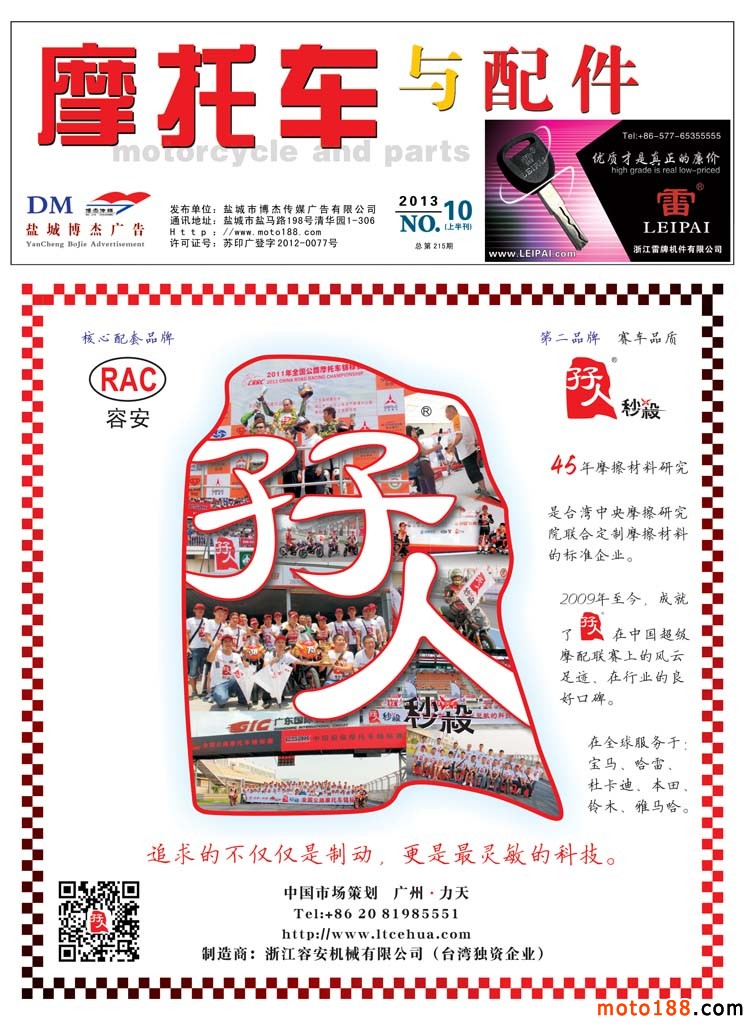 本次雜志因為要參加10月17-20日在重慶國際博覽中心舉辦的第十二屆中國國際摩托車博覽會,在這個展會上我們還將《中國摩托車配件華東市場指南》帶到會上發行,因而我們在過完中秋節后,工作就十分繁忙。為了能保證及時參展,我們都在趕點,這之中還包括國慶假日,印刷廠還要放假,江蘇到重慶的在途運輸時間等。為了兌現我們出版發行的承諾,我們也只有努力工作。