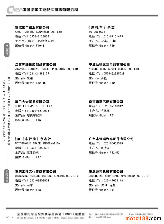 第33屆秋季(南京)全國摩托車及配件展示交易會參展企業(yè)名錄