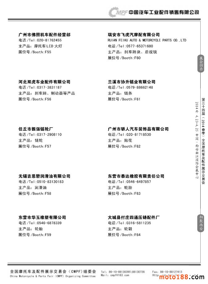 第33屆秋季(南京)全國摩托車及配件展示交易會參展企業(yè)名錄