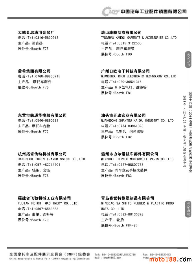 第33屆秋季(南京)全國摩托車及配件展示交易會參展企業名錄