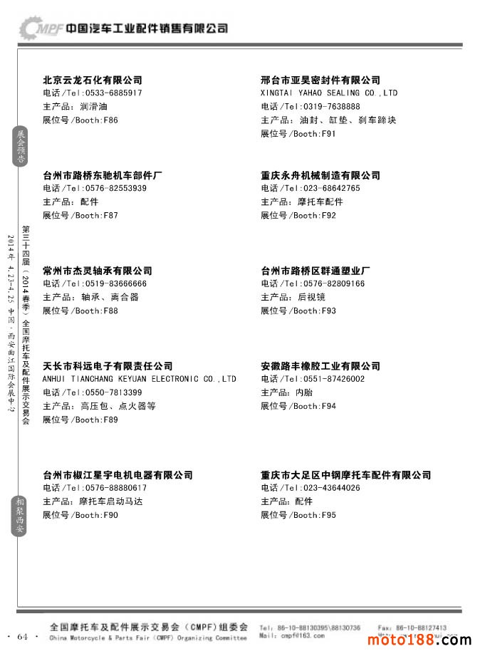 第33屆秋季(南京)全國摩托車及配件展示交易會(huì)參展企業(yè)名錄