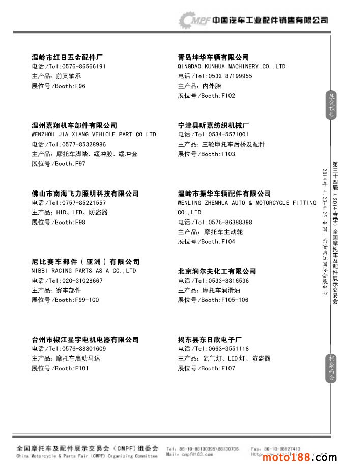 第33屆秋季(南京)全國摩托車及配件展示交易會(huì)參展企業(yè)名錄