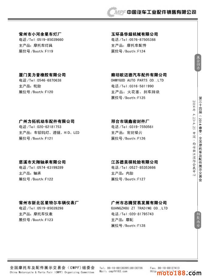 第33屆秋季(南京)全國摩托車及配件展示交易會參展企業名錄