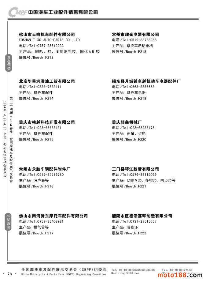 第33屆秋季(南京)全國摩托車及配件展示交易會參展企業名錄