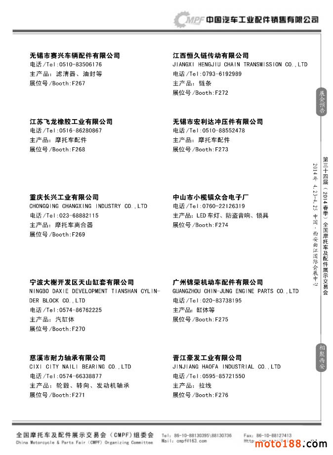 第33屆秋季(南京)全國(guó)摩托車及配件展示交易會(huì)參展企業(yè)名錄