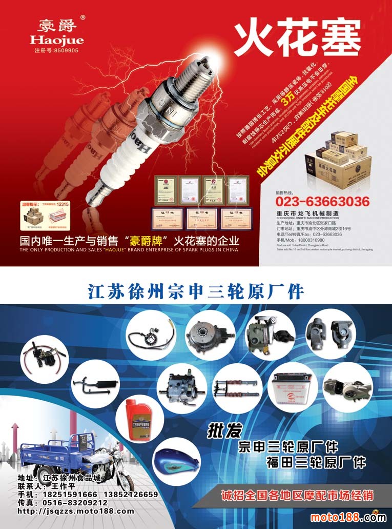彩內29 豪爵火花塞/江蘇徐州宗申三輪原廠件