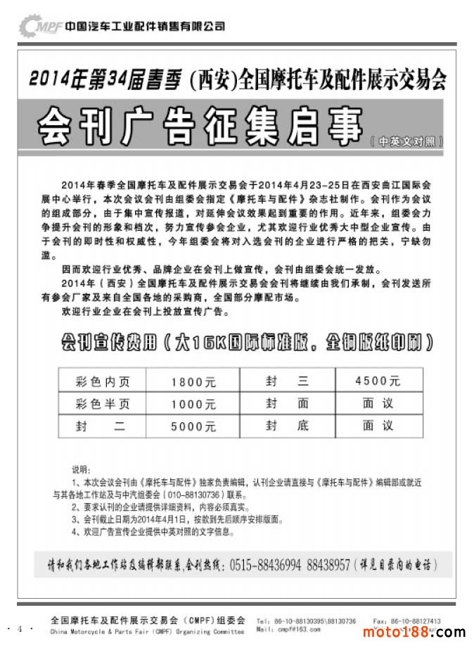 2014年第34屆春季(西安)全摩會(huì)會(huì)刊征集啟事
