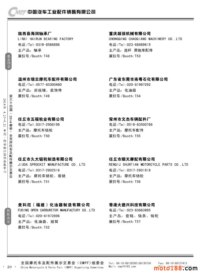 第33屆秋季(南京)全國摩托車及配件展示交易會參展企業名錄