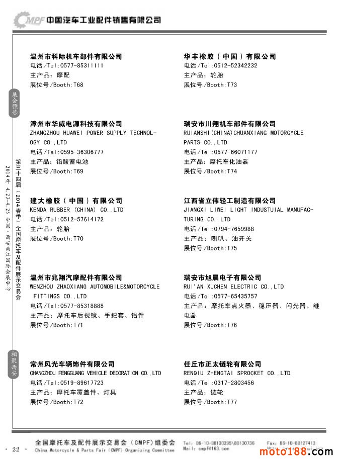 第33屆秋季(南京)全國(guó)摩托車及配件展示交易會(huì)參展企業(yè)名錄