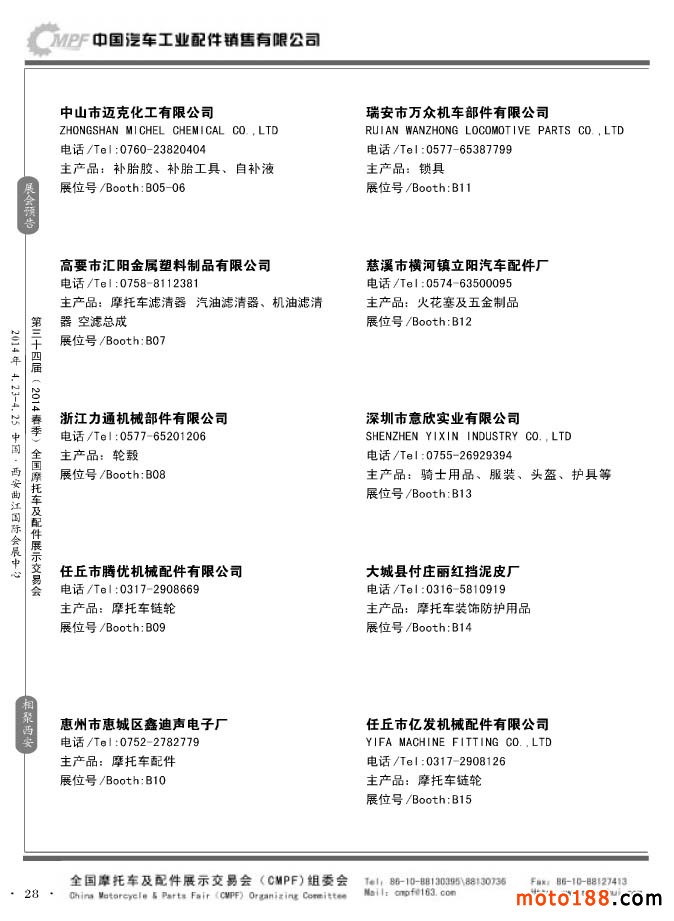 第33屆秋季(南京)全國(guó)摩托車及配件展示交易會(huì)參展企業(yè)名錄