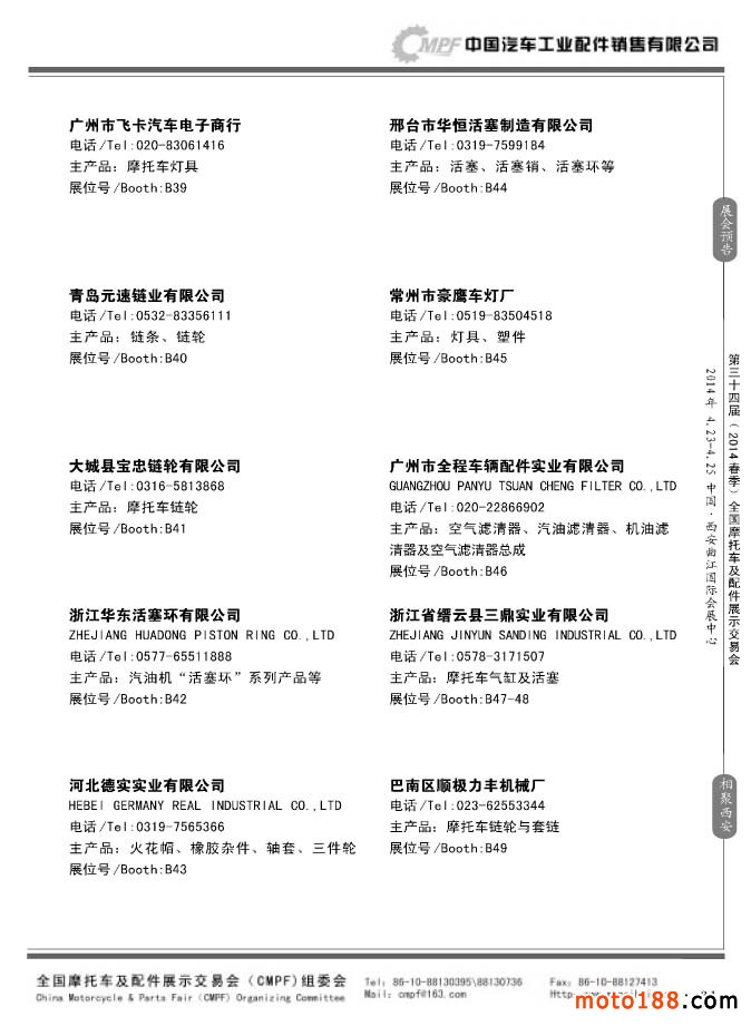 第33屆秋季(南京)全國摩托車及配件展示交易會參展企業名錄