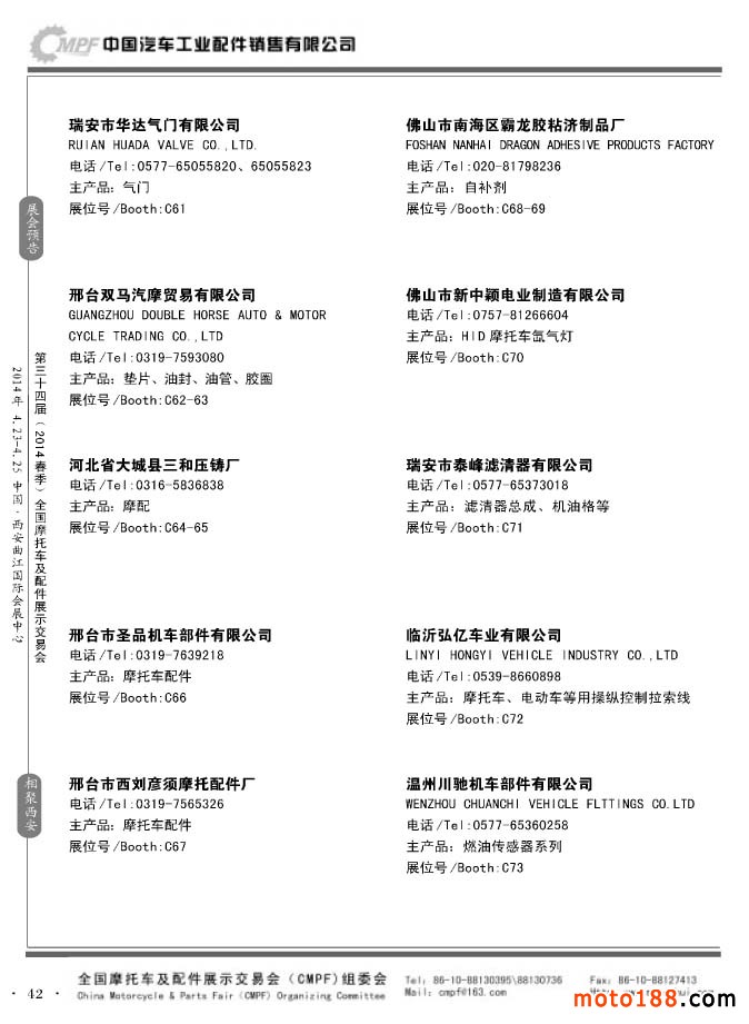 第33屆秋季(南京)全國摩托車及配件展示交易會(huì)參展企業(yè)名錄