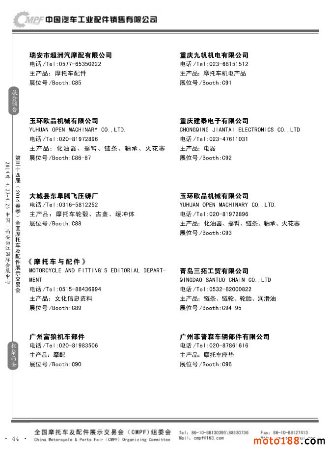 第33屆秋季(南京)全國摩托車及配件展示交易會參展企業名錄