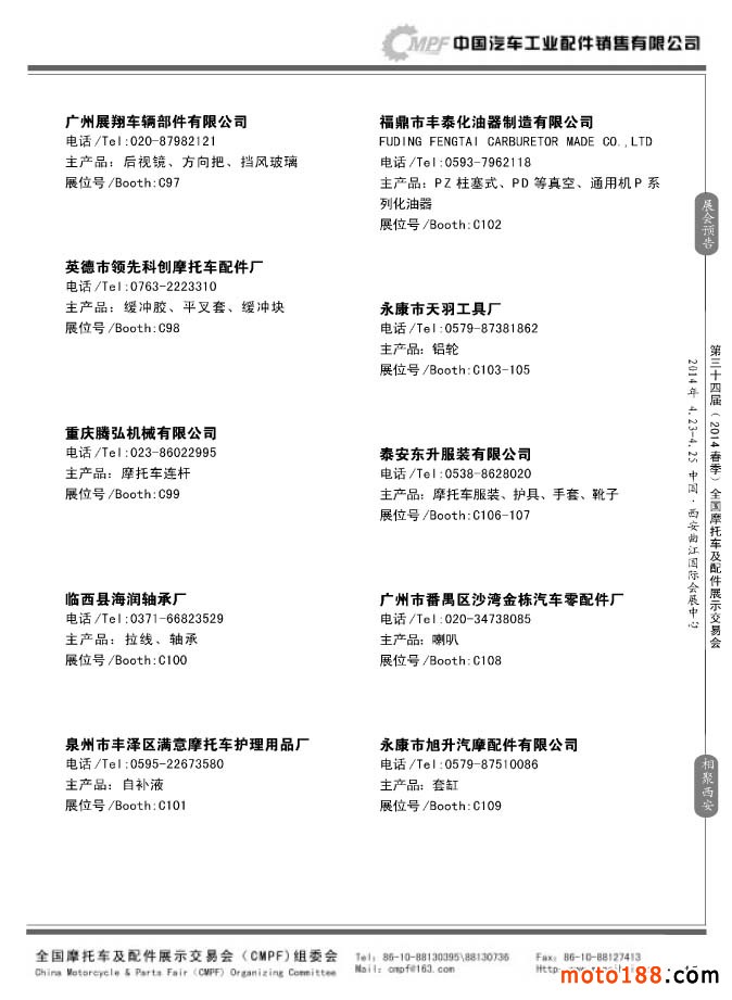 第33屆秋季(南京)全國摩托車及配件展示交易會參展企業名錄