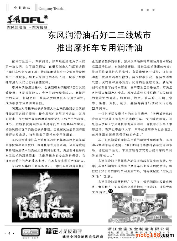 隨著秋季全摩會的召開,行業也進入到收宮之戰。我們雜志也在謀兵布局于明年,初步打算,明年雜志采用全彩色印刷;雜志還以月刊出版,即一月一期。今年做了增刊的嘗試,上半年雜志較薄,下半年明顯厚實了,但我們還是尊重行業大部分人的意見,調整為月刊。會上我們也希望大家多提建設性的改進意見,把行業碩果僅存的雜志做得更好。目前我們在行業沒有參照的樣板,我們只有摸索著石頭過河。在今年行業大環境不好的狀況下,我們的雜志增加了行業產業延伸的專題報道,如:小型通機、三輪摩托車等。希望企業能在這些信息中,發現新的商機,走創新發展之路,為企業爭取更多的發展空間。