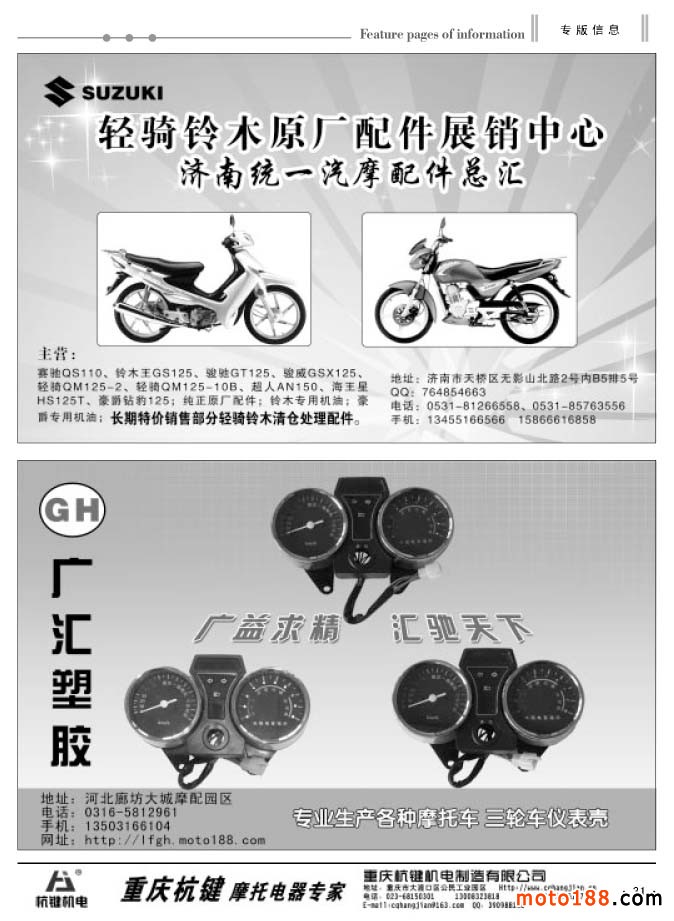 同時還有今年新編的第四期《中國摩托車配件外貿報》,本報除在省會市場發行之外,在廣州和重慶的市場都設有報架,讓客戶隨手取閱。本次報紙和雜志將會一起派送。今年的全摩會《會刊》仍然由中汽組委會派發,在進門口領參展證的同時,領取《會刊》,我們只負責制作,組委會負責發行。