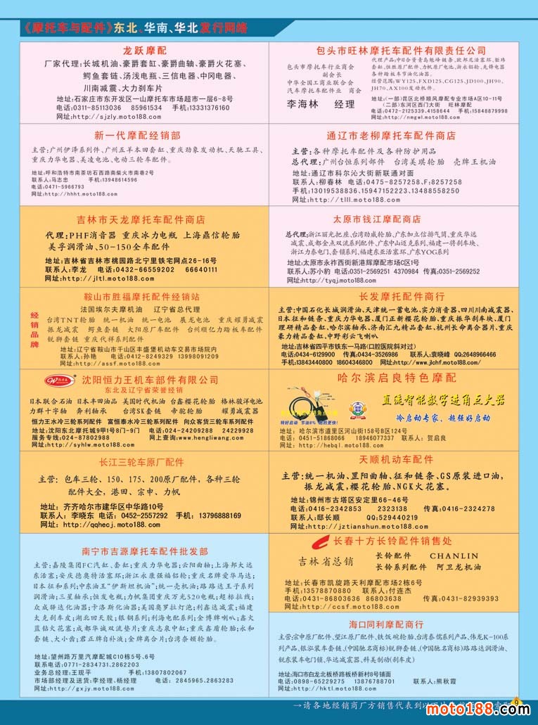 目前摩托車配件企業面臨比較嚴峻的市場現狀,但是我們了解到許多企業并不是坐以待毖,同時這個行業也在各個方面尋求突破,并且迎來了新的商機。我們雜志明年在信息發布上,也將增加和摩配行業有關的外延,如電動摩托車、三輪摩托車、助力車、小型通機等。這些零部件,都是我們配件廠能制造的,技術也是相通的。目前電動摩托、三輪摩托,小型通機市場都很不錯,產銷兩旺,有的還是有良好的發展遠景。除了通過紙媒來推廣和普及外,我們的網站也將同時增加這方面的動態信息,發布即時報道,開通這幾個板塊的專題,為行業傳輸更多的信息;我們的網站也將在今冬明春大改版,進一步擴容。在嚴峻的形勢下,我們一定要逆流而上,拓展生存和發展空間,同時我們也會將這幾方面的信息向行業傳遞,供行業企業決策參考。當然我們更要在市場的第一線增加發行,補充完善這幾方面的信息數據庫。這些工作先從各省會城市開始,由大市場向小市場拓展,充分利用現行發行網絡的功能,增加不同行業和市場的發行。