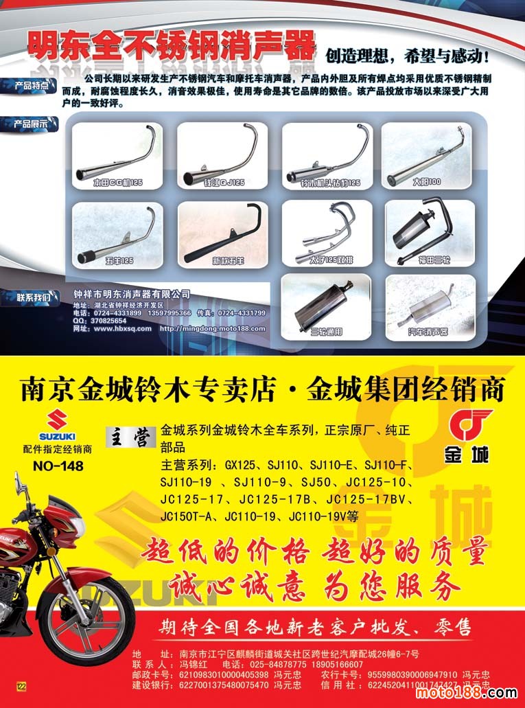 內122 明東全不銹鋼消聲器/南京金城鈴木專賣店·金城集團經銷商