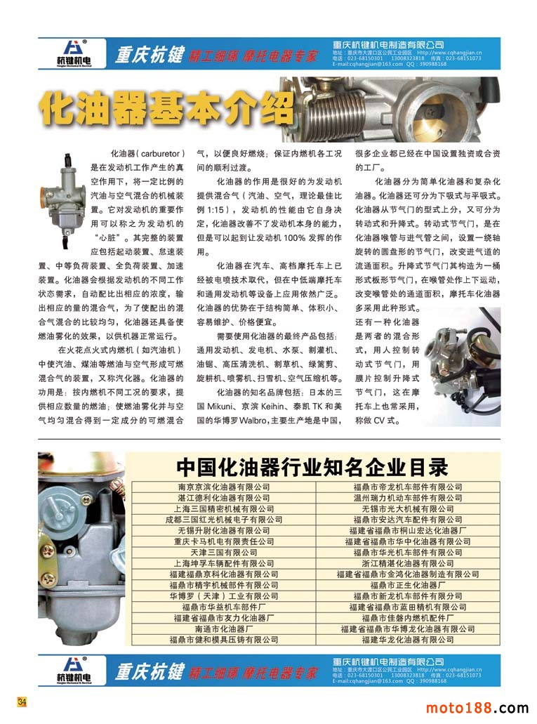 內(nèi)34 化油器基本介紹/中國(guó)化油器行業(yè)知名企業(yè)目錄(文)