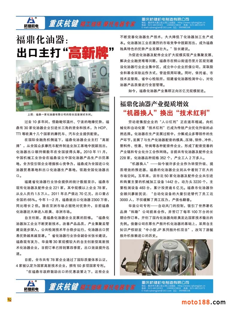 內40 福鼎化油器:出口主打“高新牌”(文)/福鼎化油器產業提質增效 “機械換人”換出“技術紅利”(文)