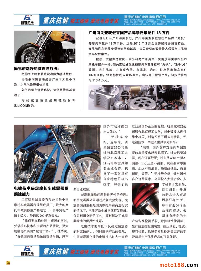 內38 簡易辨別好的減震油方法(文)/廣州海關查獲假冒國產品牌摩托車配件13萬件(文)/電鍍技術決定摩托車減震器/耐腐蝕能力(文)