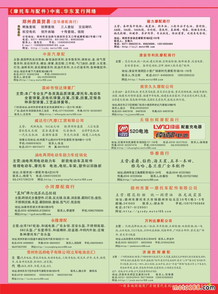 今年冬天我們還完成了對moto188網站的改版:在網站的右上方分別有三輪摩托車、電動摩托車、小型通機的圖標和文字,點擊它們,你可以進入到這三個行業的網站之中,這些網站我們也安排專人負責日常的更新,幾乎每天都有新的內容,歡迎大家了解摩托車配件以及延伸行業的資訊。 因為有了www.zjsoxnet.com網站即時發布信息的功能,有關行業的最新資訊、市場供求、行業動態等都可以在這些信息平臺上了解。