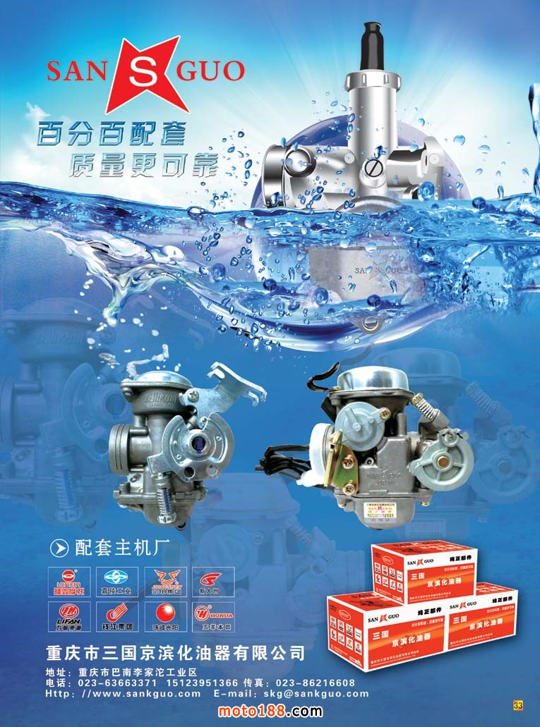 今年我們的雜志還涉及了三輪摩托車、電動摩托車和小型通機三個關(guān)連行業(yè),在我們www.zjsoxnet.com網(wǎng)站上鏈接了三輪摩托車:sl .moto189com;電動摩托車dd .moto189.com;小型通機tj .moto189.com。前邊兩個字母分別是前兩個字的聲母很容易記住,大家有空可以去瀏覽。今年下半年我們將加大力量做好這三個網(wǎng)站,再往里面裝填更多內(nèi)容,爭取用一到二年時間,像我們 www.zjsoxnet.com一樣成為行業(yè)的大型網(wǎng)站。