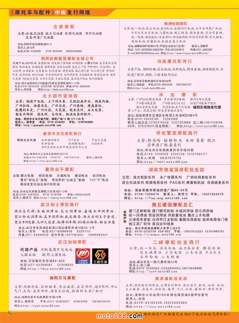 全摩會后,我們的工作是每月出一本雜志,同時編新版《華南市場指南》、第十二次《中國摩托車配件生產(chǎn)企業(yè)大全》升級版,在十一月份廣州會議上首發(fā)這兩本書。下半年廣州再見!