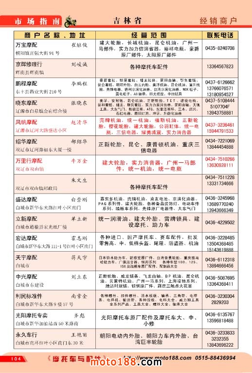 歷時半年,橫跨十三省市的《北方市場指南》今天終于成書,奉獻給行業企業,這本書是我們《中國摩托車配件市場指南》的第三個分冊,也是工作量和難度最大的一本書,為了資料的準確,我們雜志社全體內部工作人員,在炎熱的夏季里,孜孜不倦地工作,先后冒著酷暑兵分三 路去西北、華北、東北的省份,由于夏季暑運高峰,交通也十分不便,有時為了趕路,甚至乘了三十多個小時無空調的大巴車。今天看到這本混合我們汗水和心血的《北方市場指南》我們感覺這份果實更加不同尋常,彌加珍貴。