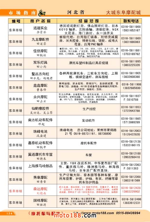 歷時半年,橫跨十三省市的《北方市場指南》今天終于成書,奉獻給行業企業,這本書是我們《中國摩托車配件市場指南》的第三個分冊,也是工作量和難度最大的一本書,為了資料的準確,我們雜志社全體內部工作人員,在炎熱的夏季里,孜孜不倦地工作,先后冒著酷暑兵分三 路去西北、華北、東北的省份,由于夏季暑運高峰,交通也十分不便,有時為了趕路,甚至乘了三十多個小時無空調的大巴車。今天看到這本混合我們汗水和心血的《北方市場指南》我們感覺這份果實更加不同尋常,彌加珍貴。