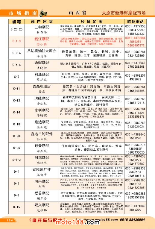 歷時半年,橫跨十三省市的《北方市場指南》今天終于成書,奉獻給行業企業,這本書是我們《中國摩托車配件市場指南》的第三個分冊,也是工作量和難度最大的一本書,為了資料的準確,我們雜志社全體內部工作人員,在炎熱的夏季里,孜孜不倦地工作,先后冒著酷暑兵分三 路去西北、華北、東北的省份,由于夏季暑運高峰,交通也十分不便,有時為了趕路,甚至乘了三十多個小時無空調的大巴車。今天看到這本混合我們汗水和心血的《北方市場指南》我們感覺這份果實更加不同尋常,彌加珍貴。