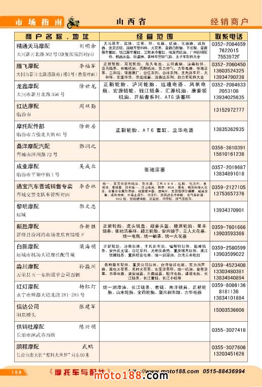 目前本系列書籍已成功出版了三個系列,由于我們的真心付出,市場的反響也越來越好,本來我們計劃在全國摩配會前截稿,由于廣告突破了我們的計劃,我們提前一個月出版,本書 的信息量也比以往大,廣告量如不控制將會爆發(fā)性增長,書太厚不方便大家的使用,因而我們 毅然提前停止了廣告的征集。