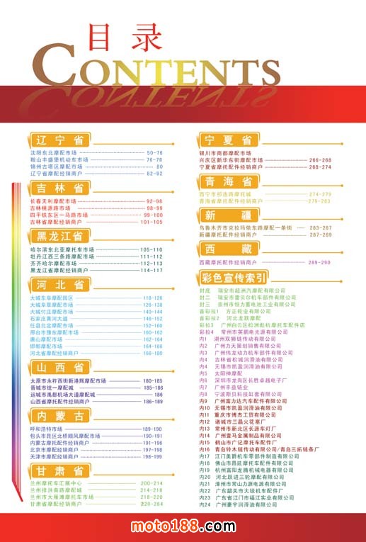 目前本系列書籍已成功出版了三個系列,由于我們的真心付出,市場的反響也越來越好,本來我們計劃在全國摩配會前截稿,由于廣告突破了我們的計劃,我們提前一個月出版,本書 的信息量也比以往大,廣告量如不控制將會爆發性增長,書太厚不方便大家的使用,因而我們 毅然提前停止了廣告的征集。