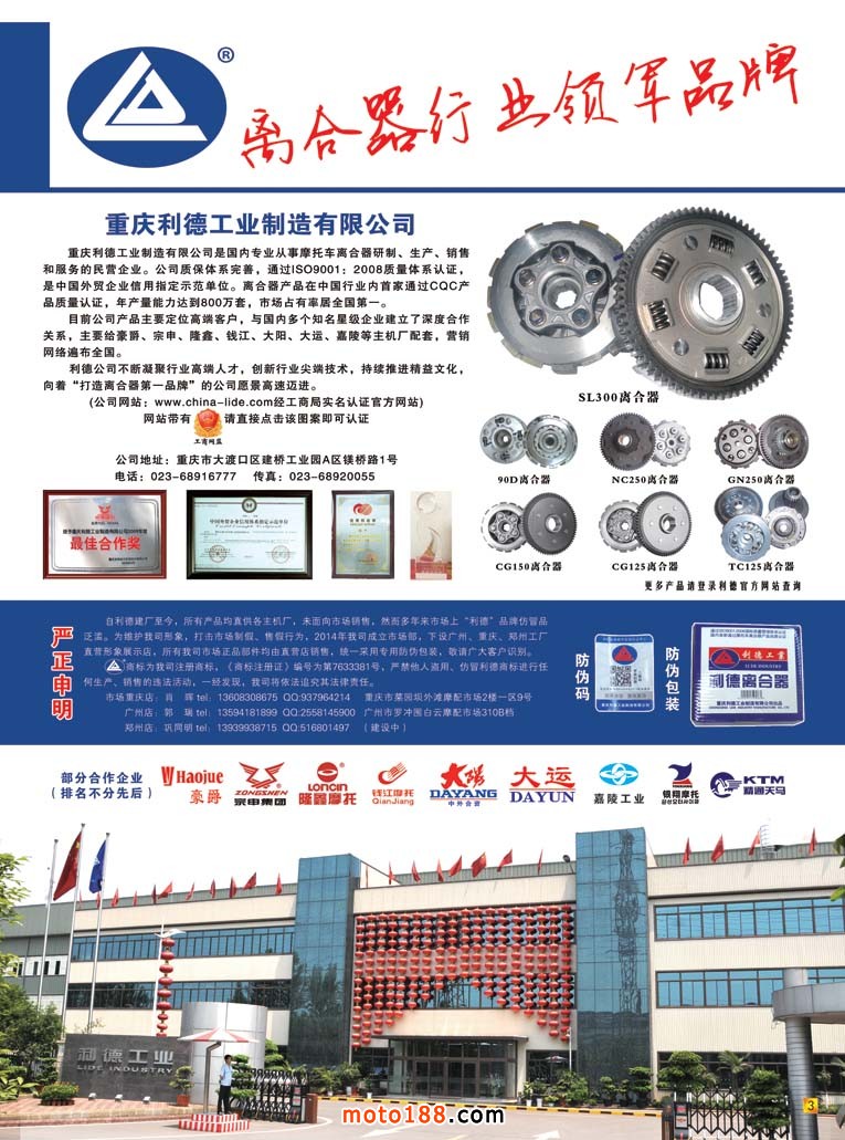 炎熱的夏季終將過去,收獲的秋天在等待我們,從下一期雜志開始,我們就要為廣州全摩會做準備工作了,在這個會上,我們會向全體參會人員奉獻兩本數據庫類書籍,一本是生產廠家的《摩托車配件生產企業大全》,在這一個升級版中,我們新增加十幾個大的摩托車整車生產廠家資料,同時增加二十家電動車生產廠家及十幾家三輪摩托車和三輪電動車廠家,努力根據市場需要豐富書的內容。還有一本就是第二次升級的《華南市場指南》收集廣東和海南兩省的經銷商資料匯總,其中,廣東省的廣州市的市場用中英文出版,目前各項工作正緊張有序的進行,歡迎大家在全摩會期間來廣州保利展館分享我們的勞動果實。春種一粒粟,秋收萬顆籽。