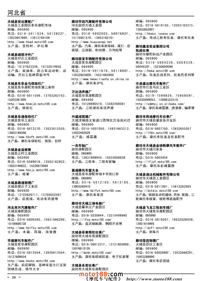 2015年升級(jí)版摩托車配件生產(chǎn)企業(yè)大全對(duì)13版進(jìn)行了大力度的調(diào)整:刪除了2013年之前銷聲匿跡的單位,盡管有的電話是可以打通的,比如浙江和河北刪除的單位比較多。本次版本里的所有單位都是有具體出處和來歷的,而且是這兩年來經(jīng)營比較活躍的單位。
