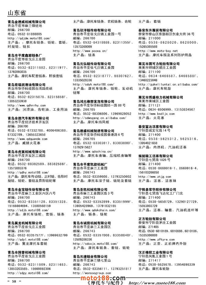 2015年升級(jí)版摩托車(chē)配件生產(chǎn)企業(yè)大全對(duì)13版進(jìn)行了大力度的調(diào)整:刪除了2013年之前銷(xiāo)聲匿跡的單位,盡管有的電話是可以打通的,比如浙江和河北刪除的單位比較多。本次版本里的所有單位都是有具體出處和來(lái)歷的,而且是這兩年來(lái)經(jīng)營(yíng)比較活躍的單位。