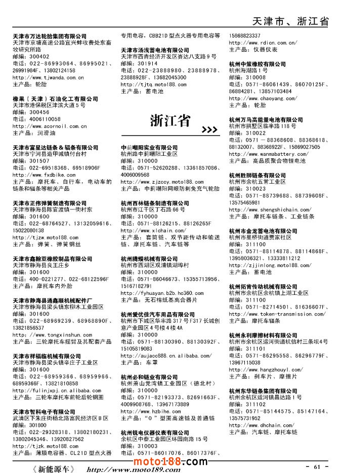 這兩年行業調整力度非常大,為了確保我們提供的信息準確性,我們本著寧缺毋濫的原則,不去圖虛的數量。目前摩托車與配件行業的不少經銷商是跨行業經營的,所以我們在本書中增加了部分摩托車整車廠、電動車生產廠、機動三輪車制造廠。所選的這些企業都是這個行業具有影響力的品牌企業,是為了大家在使用這本書時,獲取相關的延伸產業更多的實用信息。